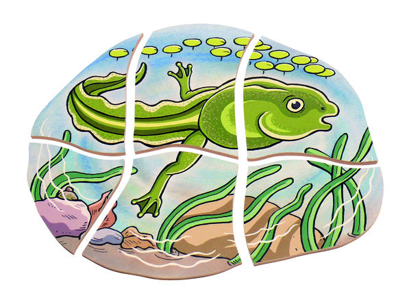 Das Lagenpuzzle "Frosch" zeigt in anschaulicher und kindgerechter Weise das Wachstum eines Frosches. Das jeweilige Thema der lagenartig angeordneten Puzzles wird bildhaft erklärt. Die einzelnen Puzzleteile wurden als Hilfestellung auf der Rückseite nummeriert. Hiermit fördern die langenartigen Puzzels das Zuordnungsvermögen, Kombinationsvermögen und das Erkennen von Zusammenhängen.