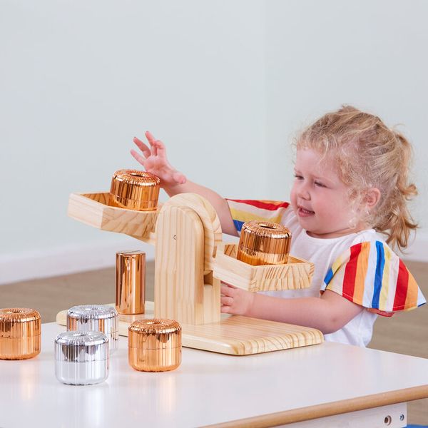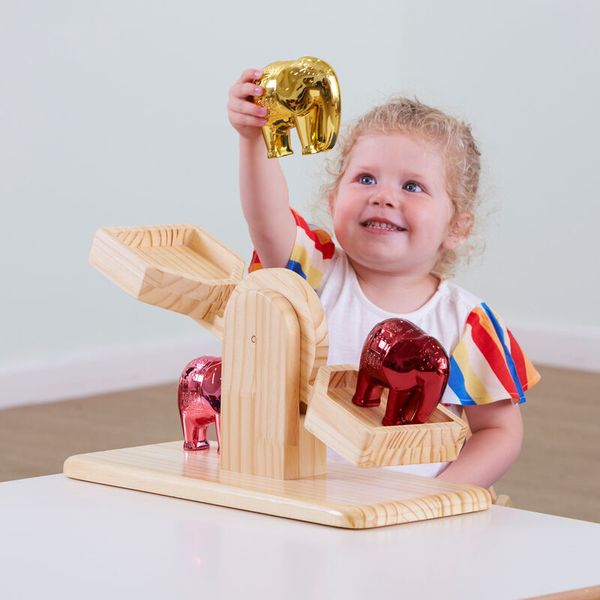 Es handelt sich um eine Spielwaage, die zum Ausbalancieren und für Entdeckungen gedacht ist. Die Spielwaage ist nicht mathematisch genau.