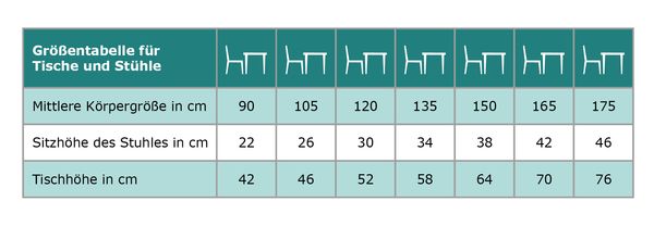 - Maße Stuhl gesamt (HxB): 46/50 cm je nach Sitzhöhe x 34,0 cm