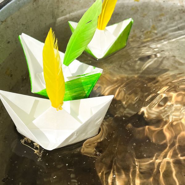 Mit dem Schwimmpapier lassen sich schöne Papierboote oder Papier-Seerosen basteln. Durch die wasserfeste Eigenschaft des Papiers schwimmen die Bastelarbeiten extra lange (bis zu 6 Wochen!) im Wasser.