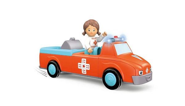 Wenn Anna und Ambys Notfalltelefon klingelt, braucht jemand dringend ihre Hilfe! Anna schaltet das Martinshorn ein und die signalrote Amby flitzt mit blinkendem Blaulicht los zur Unfallstelle. Vor Ort untersucht Anna den Kranken und beginnt sogleich mit der Erstversorgung. Oft kann Anna hier schon viel helfen und die Schmerzen sind bald vergessen. Danach legt sie den Patienten auf Ambys super weiche Liege. Dank der verstellbaren Rückenlehne ist ein Transport im Sitzen oder Liegen möglich. Nun sitzt Anna wieder auf dem Fahrersitz und die drei steuern das nächste Krankenhaus an. Wenn sie ihren Patienten abgeliefert haben, machen sich Anna und Amby sogleich wieder bereit für ihren nächsten Einsatz.