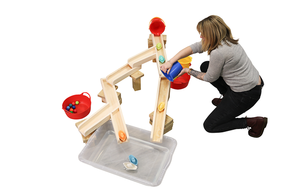 Bei diesem Spielzeug ist Kreativität gefragt! Mit den 12 Einzelteilen aus massivem Holz können Mädchen und Jungen immer wieder neue Bahnen für Wasser oder Kugeln konstruieren. Welchen Weg sollen die Papierschiffchen und Kastanien hinter sich legen? Was soll das Ziel sein? Ein aufregender Bauspaß für Drinnen und Draußen!